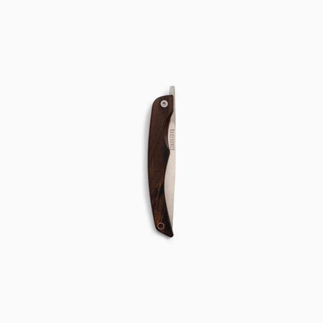 A high-quality culinary knife with pocket knife practicality. The Solo Folding Knife lets you enjoy your favorite foods from the patio to the picnic blanket. Its folding and locking stainless steel blade provide a safely packable cutting edge, and the hardwood handle and elegant design make it handsome enough for any setting.