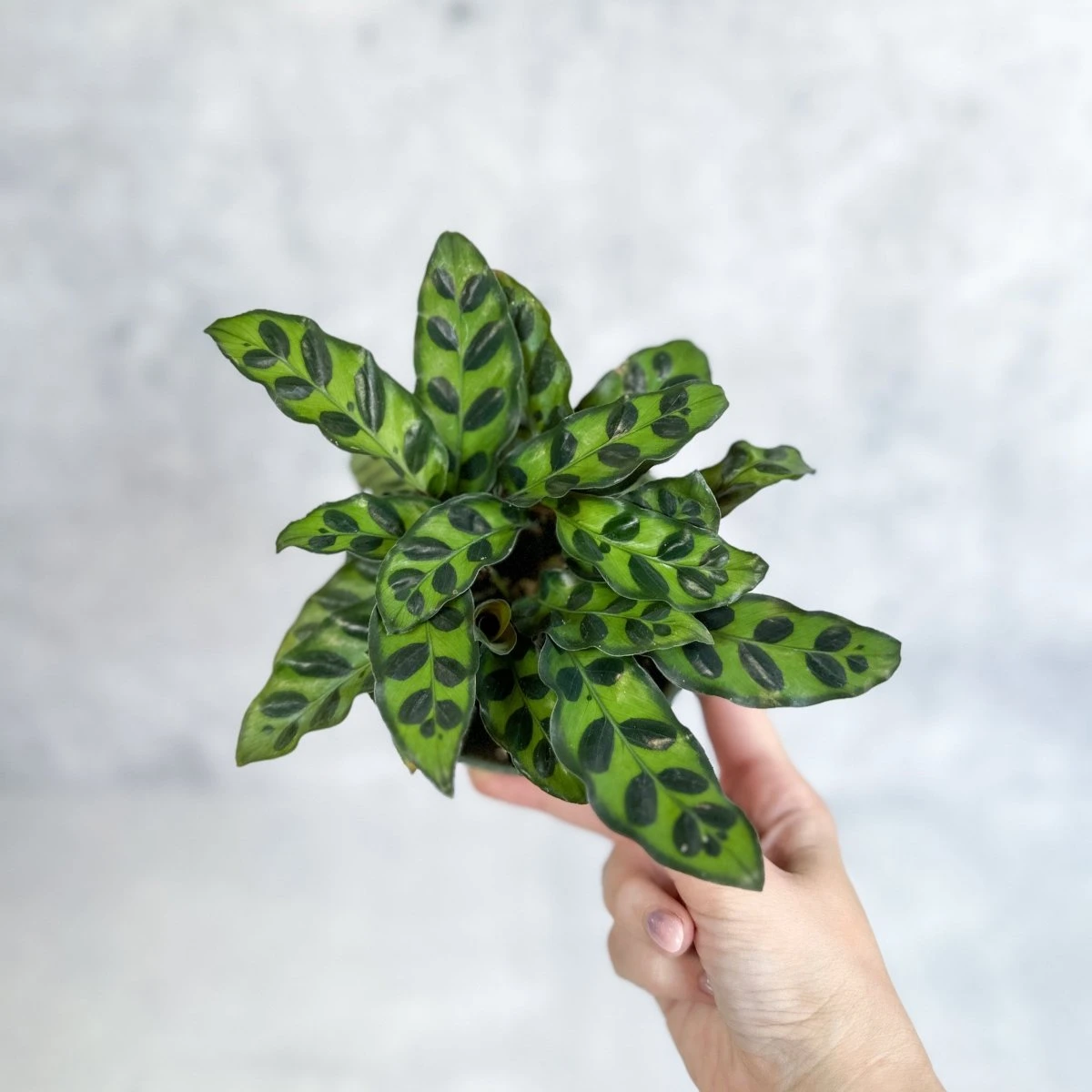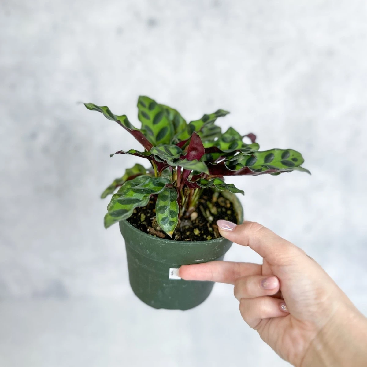 The Rattlesnake Calathea belongs to the Marantaceae family, commonly called Prayer Plants due to their nyctinastic movement—a daily rhythm in which their leaves rise in the morning and fold upwards at night, resembling praying hands. This natural movement, responding to light, makes it a truly interactive and engaging houseplant.
