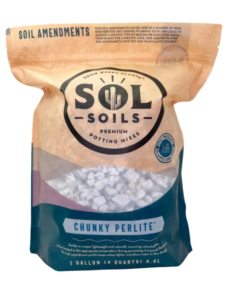 Sol Soils Chunky Perlite is a premium soil amendment made from naturally occurring volcanic glass. When heated, it expands like popcorn into lightweight, porous granules that transform potting mixes. The large particle size improves soil structure by creating air pockets, enhancing oxygen flow, and allowing excess water to drain freely. Trusted by orchid growers, succulent collectors, and houseplant enthusiasts, this chunky perlite helps prevent compaction and keeps roots thriving.