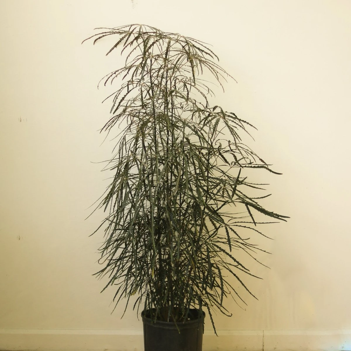 The False Aralia goes by different botanical and common names, depending on who you ask. However, regardless of what you may call it, these are plants characterized by their unique long, narrow, dark green leaves with saw-tooth edges that are a reddish colored at first, but with maturity, turn dark green, appearing almost black on some plants. It is an easy to care for plant, requiring moderate to bright indirect light for best growth. It has the added benefits of being an air purifier and friendly to all your two and four legged family and friends.Â