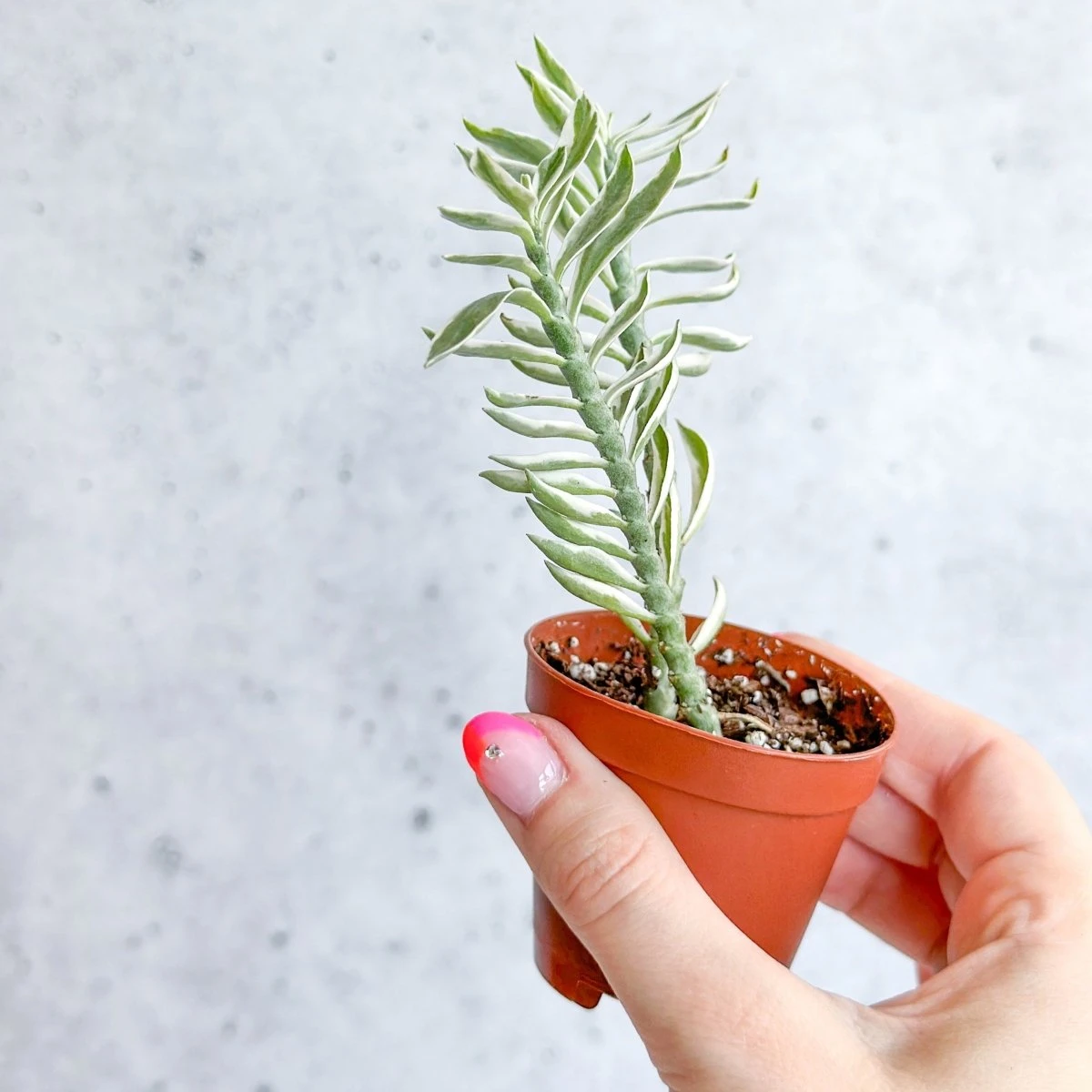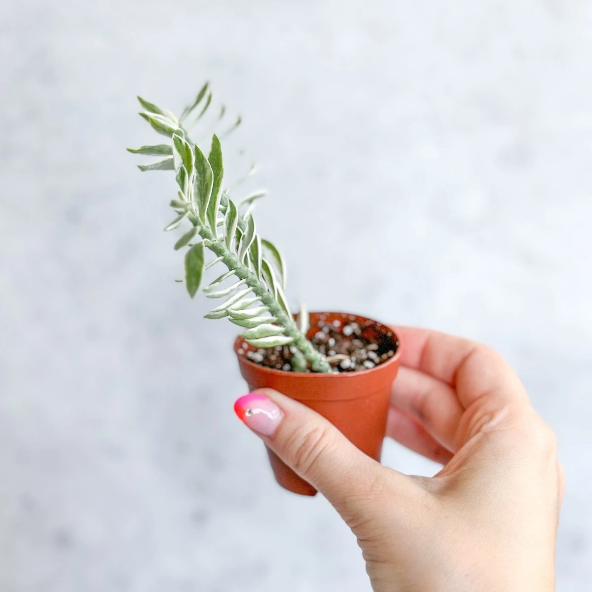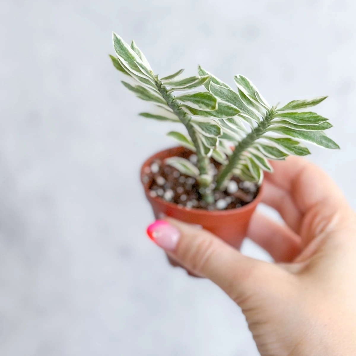 The Devils Backbone Cactus is quite the quirky plant! This plant flaunts zigzagging stems adorned with vibrant green and creamy white leaves. Each leaf is unique and has it’s own distinctive variegation, making every plant a one-of-a-kind treasure. The Variegated Devils Backbone is perfect plant to use as a conversation starter and a special addition to any indoor plant collection!
