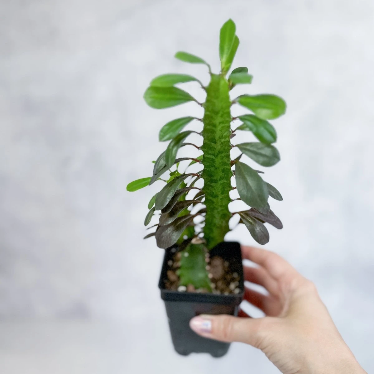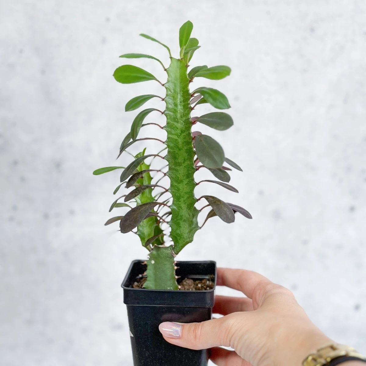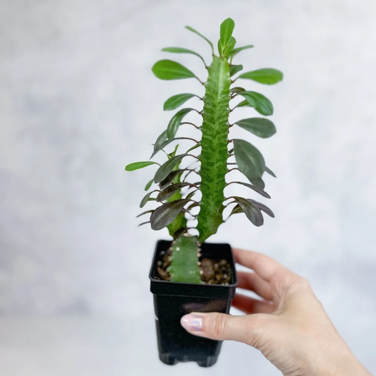 Euphorbia trigonia ‘Rubra,’ commonly known as the Red Triangle Plant, is a visually stunning succulent characterized by its unique triangular stems and vibrant red hue. Native to South Africa, this plant adds a dramatic touch to any indoor garden or succulent collection. With its low-maintenance requirements, it’s perfect for both seasoned gardeners and beginners alike.