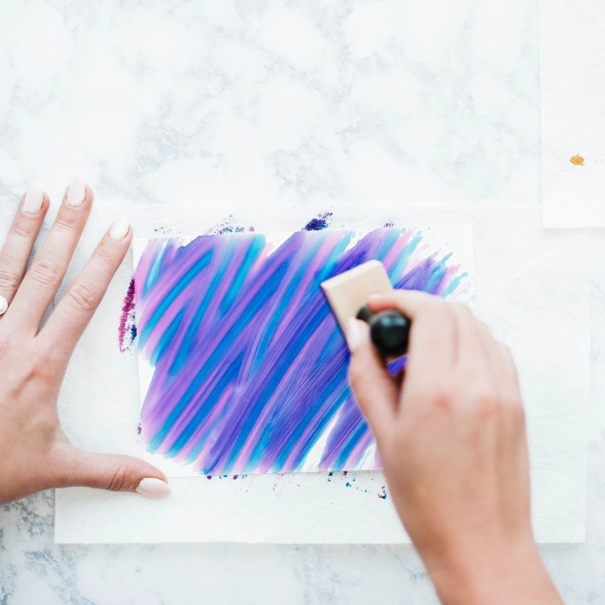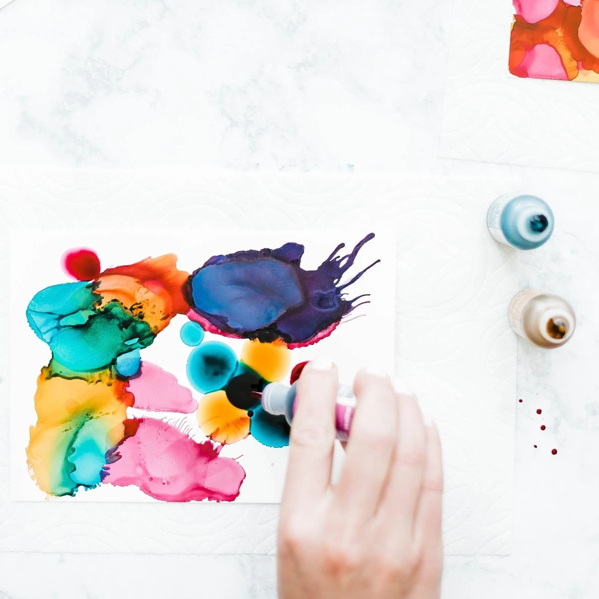 This project takes about an hour to complete. Alcohol inks are fast-drying, permanent dye inks specially formulated to produce vibrant and polished pieces. With plenty of yupo paper to share, this project is great to do with a friend!Â
