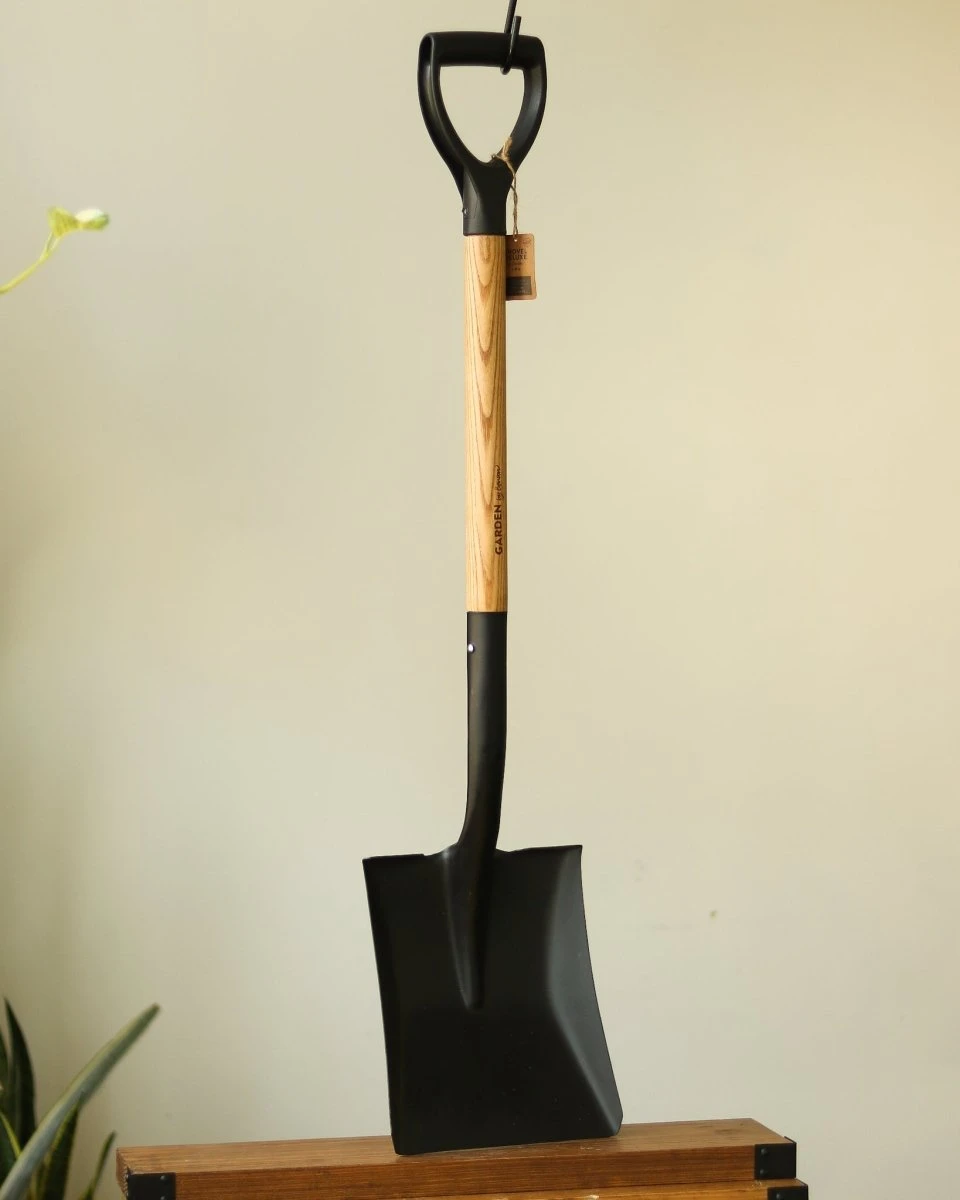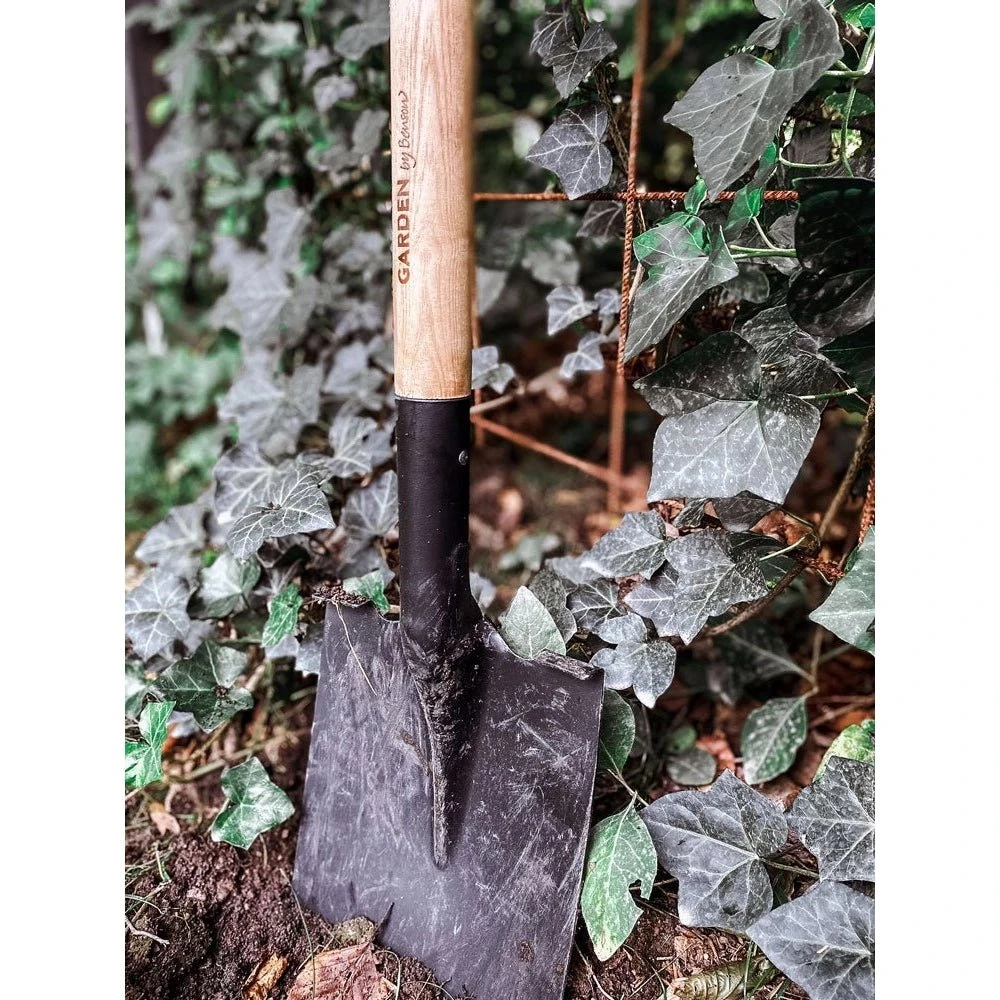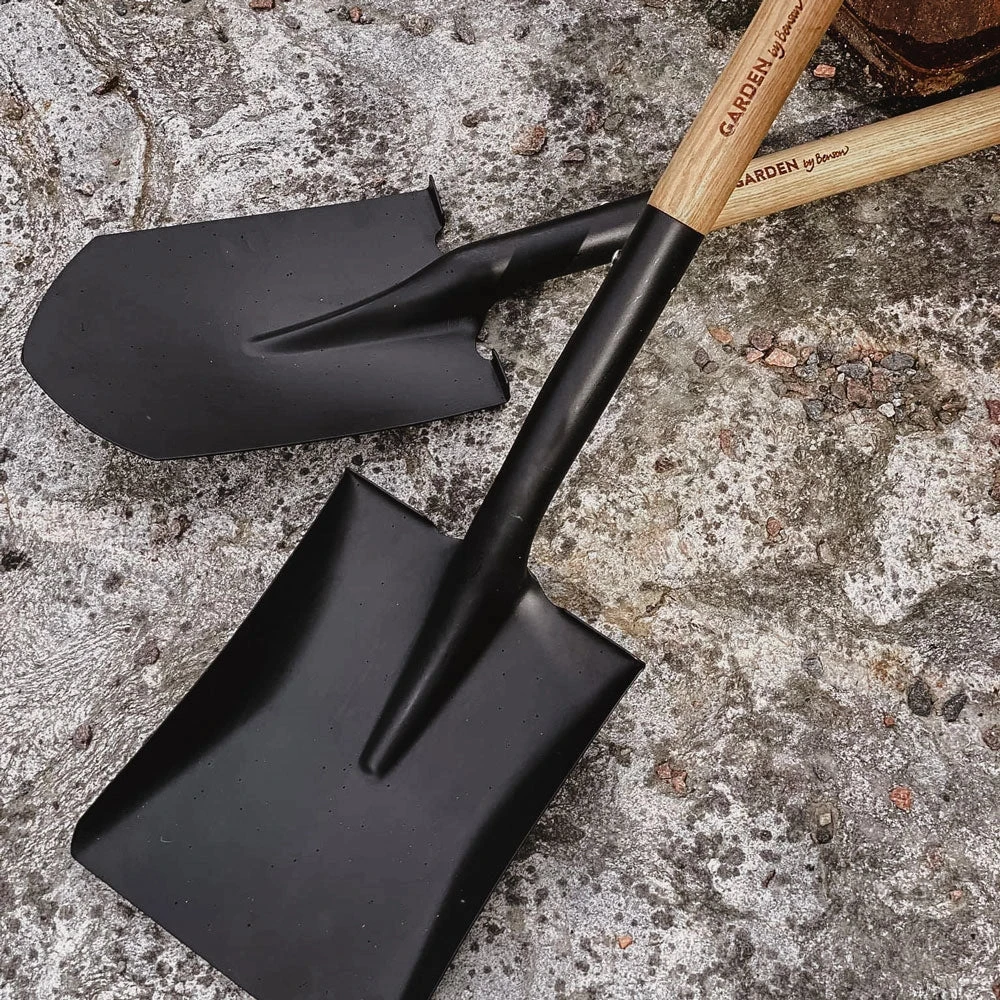 A sturdy yet lightweight shovel with a wide blade in matte black steel. Easy to lift and move large quantities of materials such as soil, sand and snow.