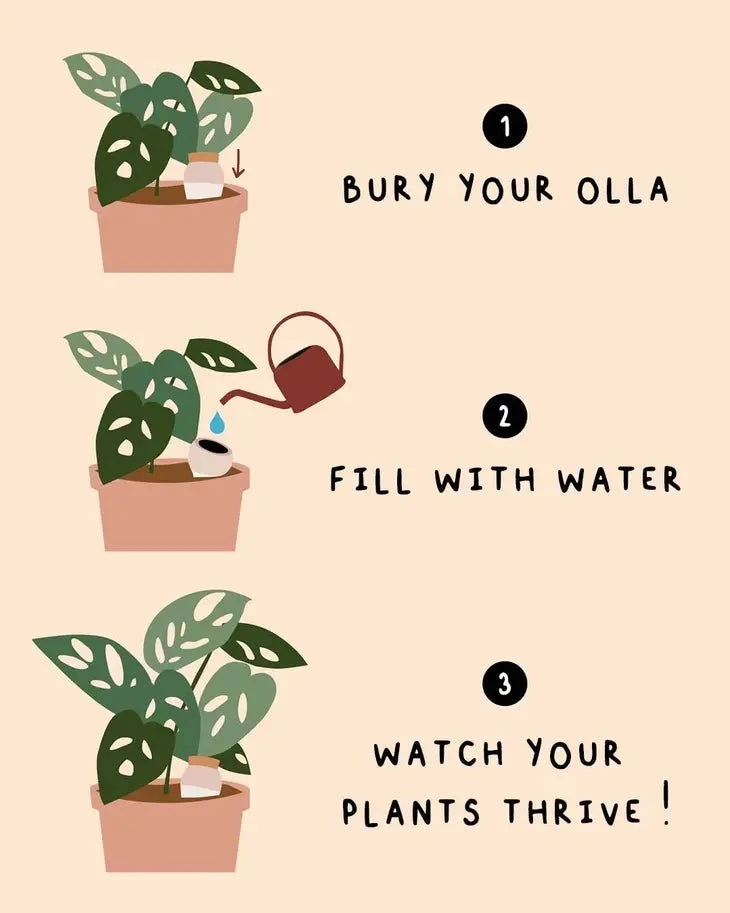 - Fill with Water: Let the olla watering pot do the work—moisture is gradually released