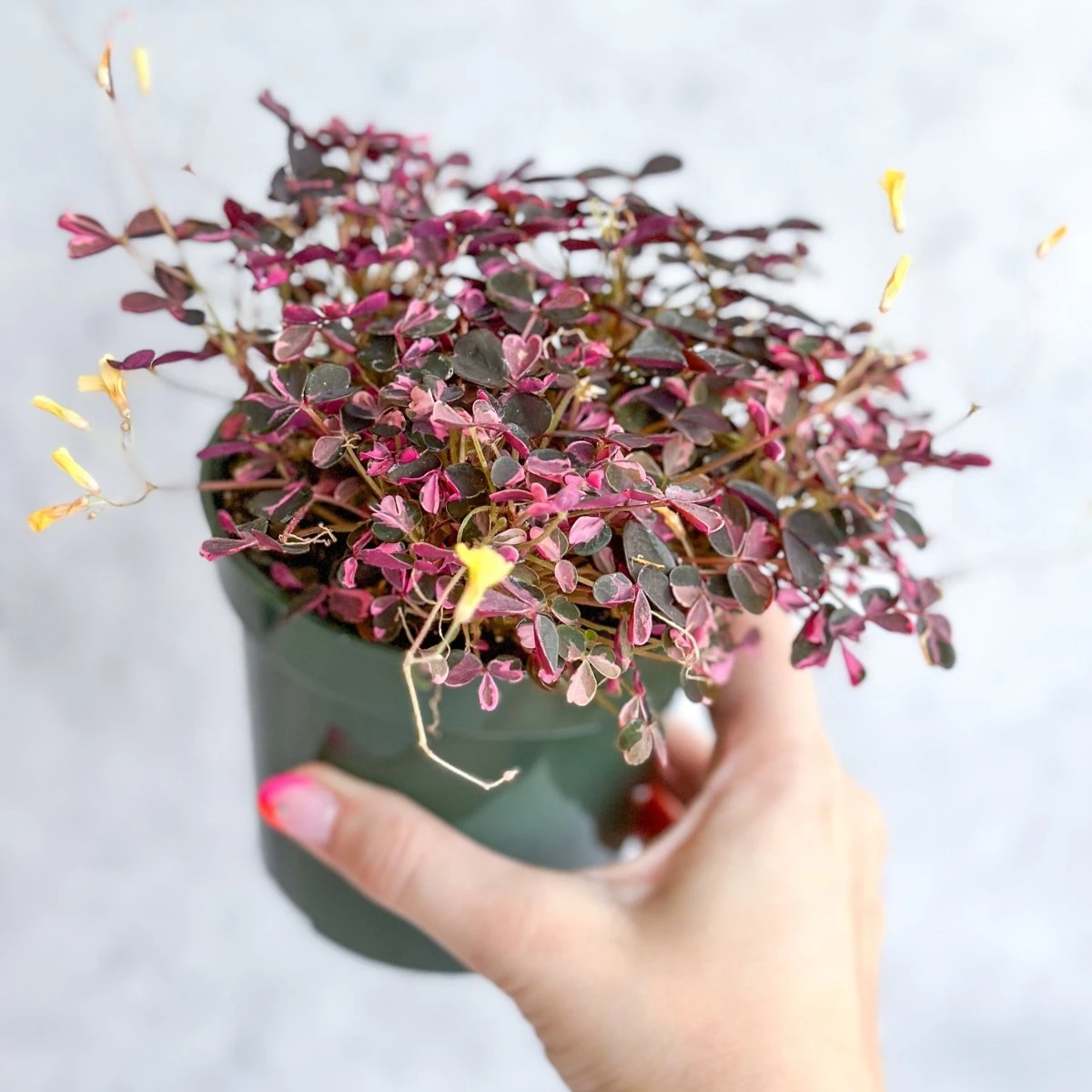 Bring a bold, colorful accent to your indoor or outdoor garden with Oxalis ‘Bi-Color’, a unique variety known for its deep burgundy leaves edged in vibrant pink. This rare and eye-catching plant produces delicate yellow flowers, creating a stunning contrast against its rich-toned foliage. Adding to its charm, the leaves exhibit nyctinasty, meaning they fold up at night and reopen with the morning sun—bringing movement and life to your plant collection.