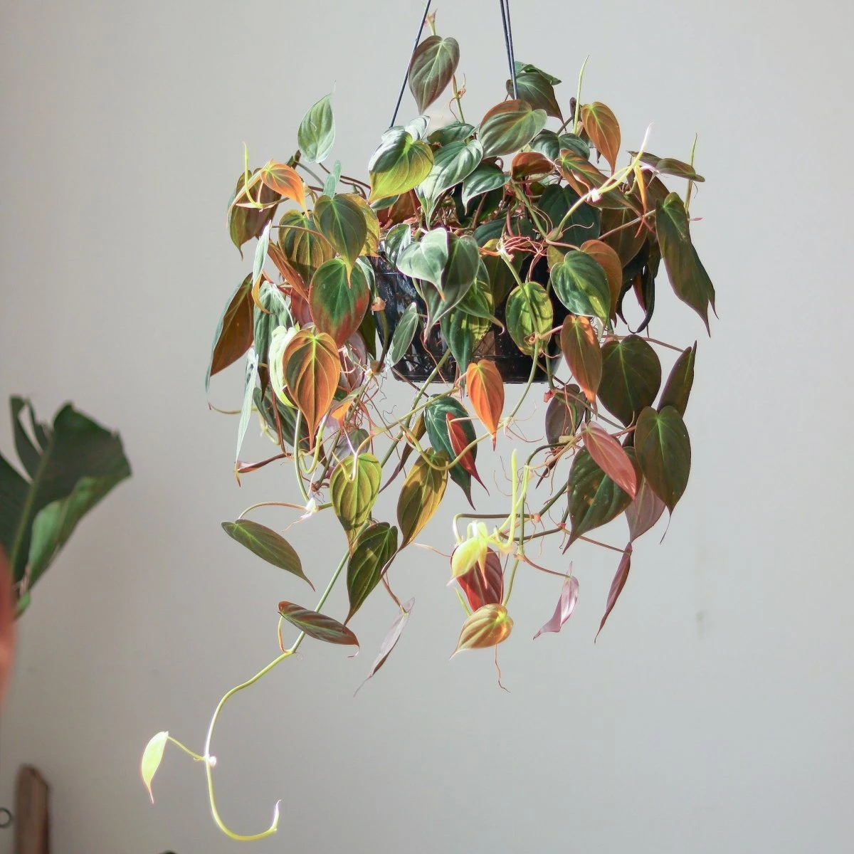 Philodendron Micans are known for their iridescent, heart-shaped leaves that are velvety in appearance. Depending on the lighting conditions the foliage color can vary from a bronzy-green to rich purple, with new leaves emerging between yellow and green, edged with pink. This Philodendron is adaptable to many growing conditions and can bring texture to a room. It looks exceptionally elegant cascading from a hanging basket or growing up a totem pole.