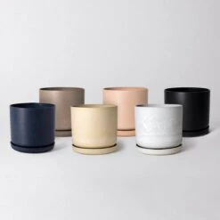 Ceramic Cylinder Planters With Saucer – Modern Indoor & Outdoor Pots In Multiple Sizes