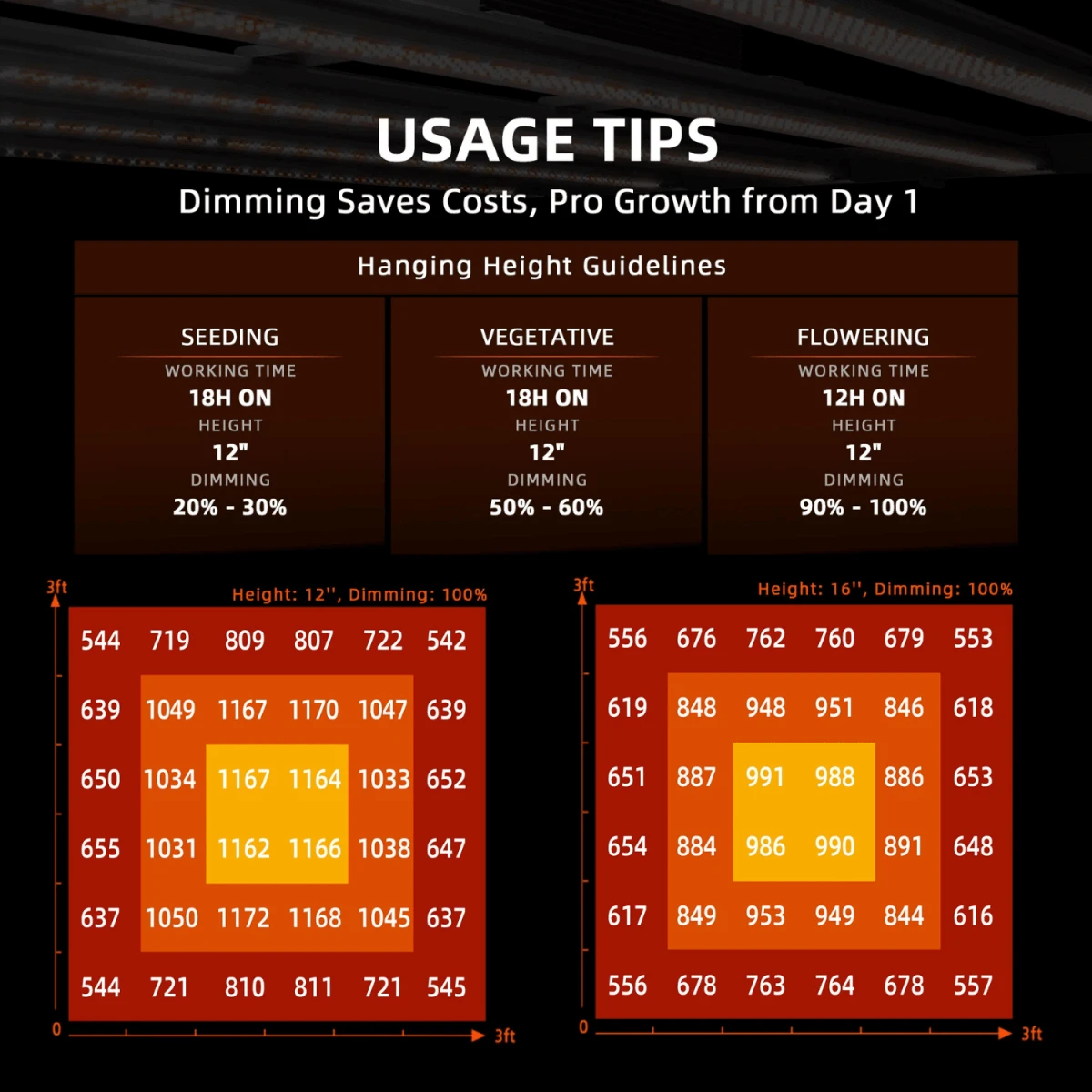 - High Efficiency: Features adjustable light intensity (10%-100%) for different plant growth stages.