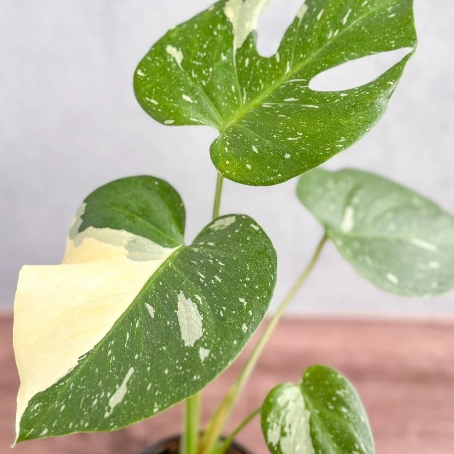 The stunning variegation in the Thai Constellation Monstera is not just for show—it’s the result of a genetic mutation that affects chlorophyll production. This mutation leads to the beautiful cream-colored patches on the leaves, making each leaf unique. The name “Thai Constellation” was inspired by the plant’s star-like patterns, reminiscent of a constellation in the night sky.