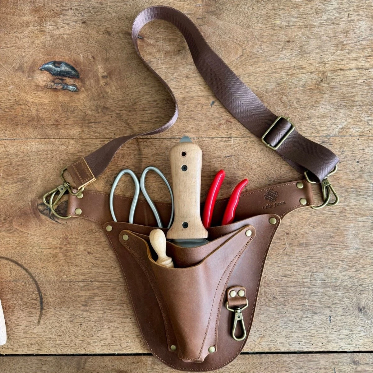 Our Leather Garden Belt & Holder has been thoughtfully designed by our very own master gardener. With years of hands-on experience and a deep understanding of what gardeners truly need, every detail of this belt has been crafted to perfection. This ensures you get a product that is not only practical but also created with the insights of a seasoned gardening expert.